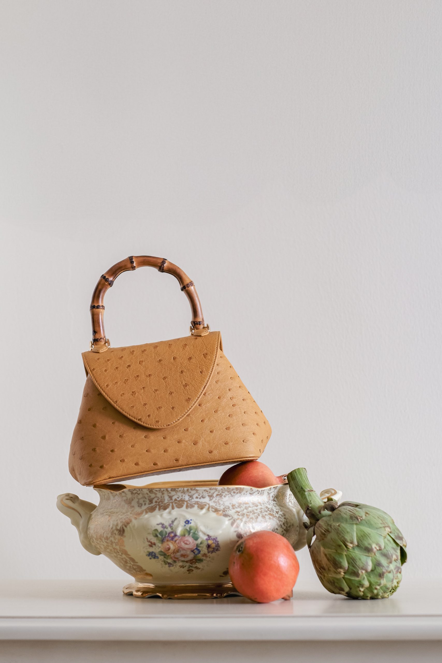 Deïne 2.0 in Exotic Ostrich skin with a natural Bamboo handle.